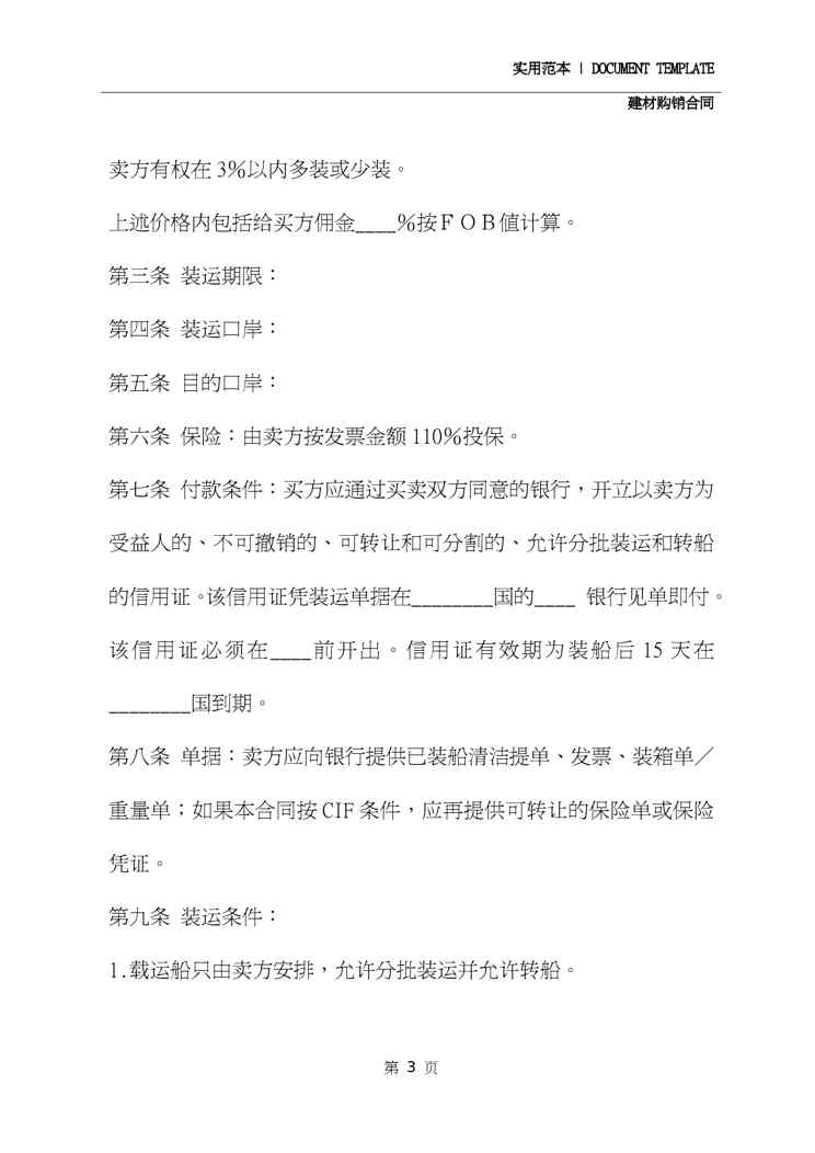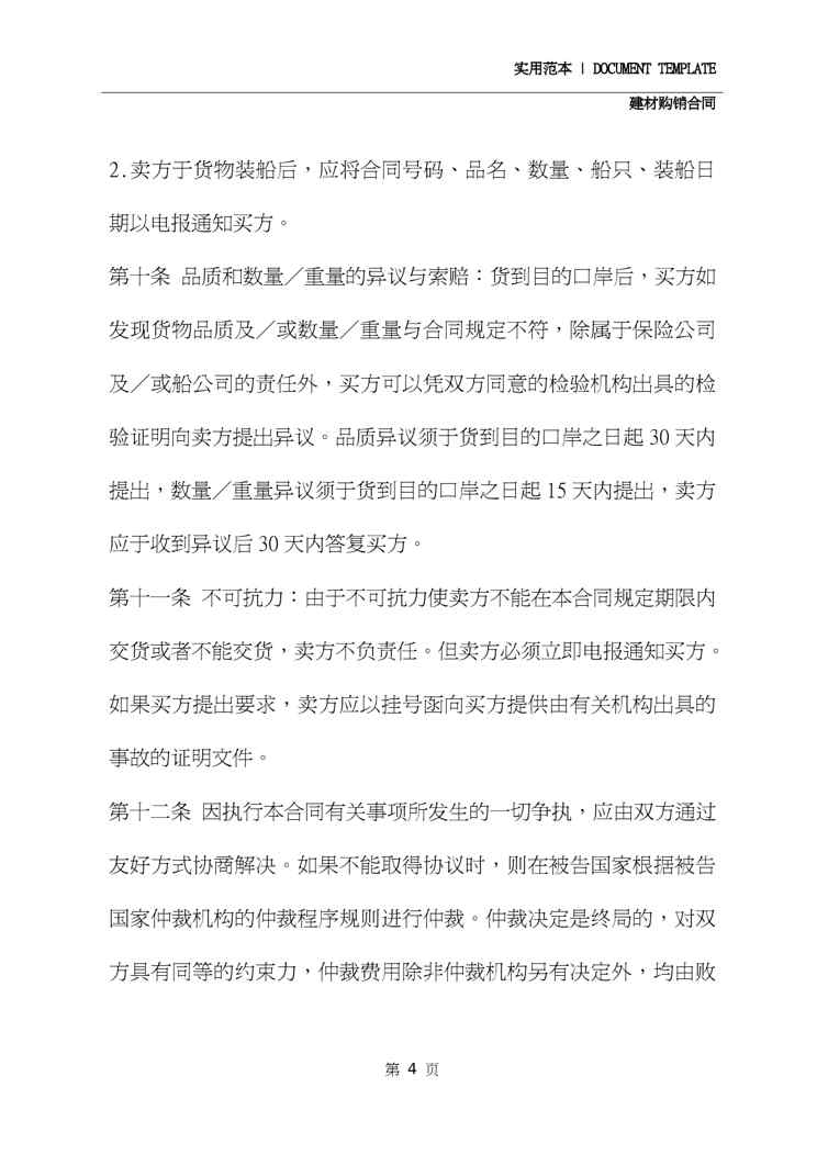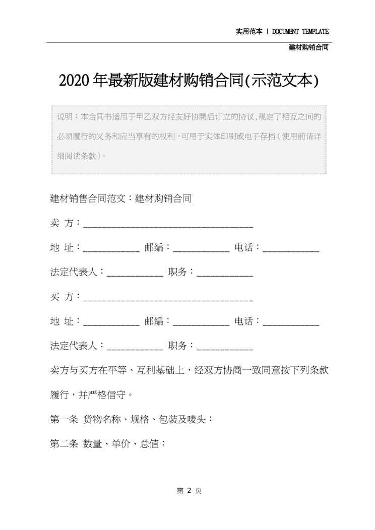 本站正式发布了《2020年最新版建材购销合同(示范文本)》文档,文档详细内容可下载阅读。 声明:本站所有文章,如无特殊说明或标注,均为本站原创发布。任何个人或组织,在未征得本站同意时,禁止复制、盗用、采集、发布本站内容到任何网站、书籍等各类媒体平台。如若本站内容侵犯了原著者的合法权益,可联系我们进行处理。