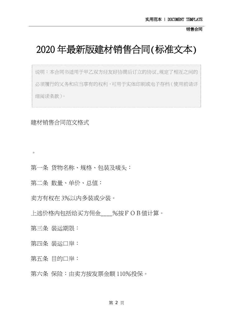 本站正式发布了《2020年最新版建材销售合同(标准文本)》文档,文档详细内容可下载阅读。 声明:本站所有文章,如无特殊说明或标注,均为本站原创发布。任何个人或组织,在未征得本站同意时,禁止复制、盗用、采集、发布本站内容到任何网站、书籍等各类媒体平台。如若本站内容侵犯了原著者的合法权益,可联系我们进行处理。
