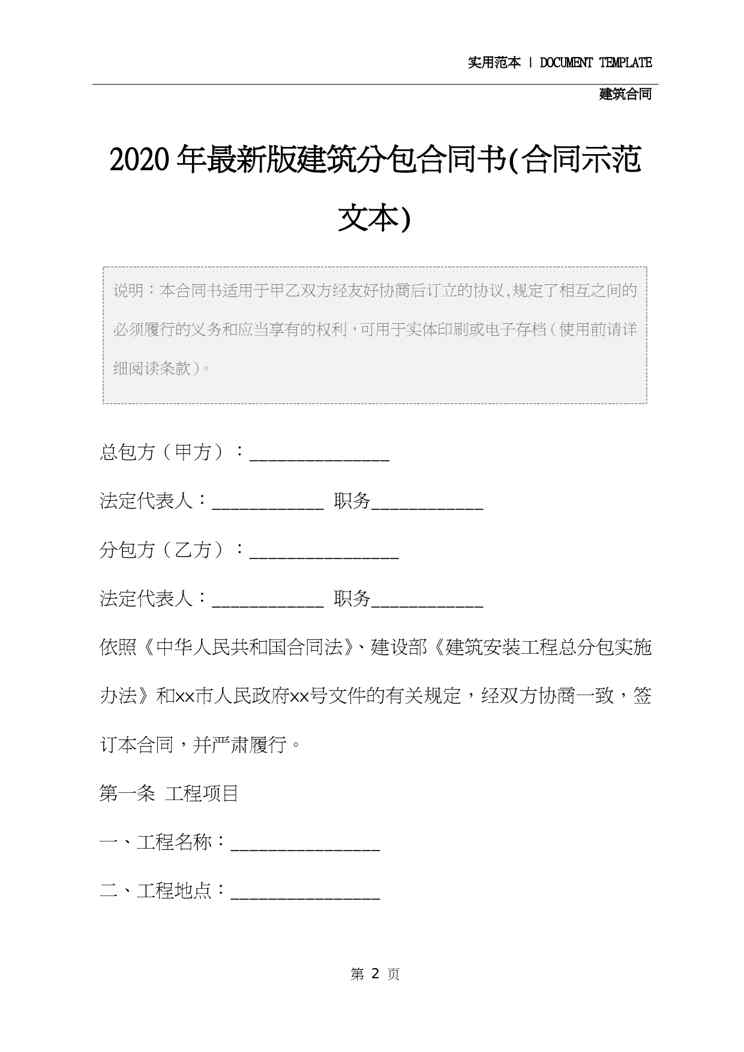 不久前,最新文档《2020年最新版建筑分包合同书(合同示范文本)》全文正式在本站发布,感兴趣的用户可以下载阅读。 声明:本站所有文章,如无特殊说明或标注,均为本站原创发布。任何个人或组织,在未征得本站同意时,禁止复制、盗用、采集、发布本站内容到任何网站、书籍等各类媒体平台。如若本站内容侵犯了原著者的合法权益,可联系我们进行处理。