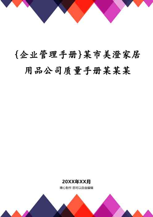 本站资深用户发布了最新的《{企业管理手册}某市美澄家居用品公司质量手册某某某》文档,以下内容为预览,详细内容可下载阅读。 声明:本站所有文章,如无特殊说明或标注,均为本站原创发布。任何个人或组织,在未征得本站同意时,禁止复制、盗用、采集、发布本站内容到任何网站、书籍等各类媒体平台。如若本站内容侵犯了原著者的合法权益,可联系我们进行处理。
