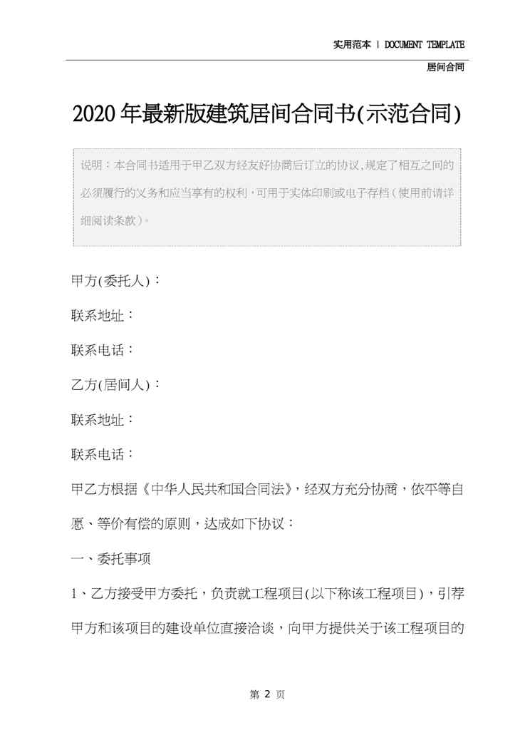 不久前,最新文档《2020年最新版建筑居间合同书(示范合同)》全文正式在本站发布,感兴趣的用户可以下载阅读。 声明:本站所有文章,如无特殊说明或标注,均为本站原创发布。任何个人或组织,在未征得本站同意时,禁止复制、盗用、采集、发布本站内容到任何网站、书籍等各类媒体平台。如若本站内容侵犯了原著者的合法权益,可联系我们进行处理。