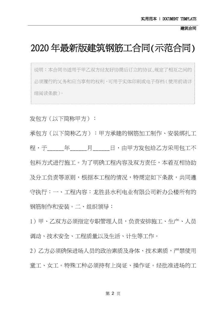 本站资深用户发布了最新的《2020年最新版建筑钢筋工合同(示范合同)》文档,以下内容为预览,详细内容可下载阅读。 声明:本站所有文章,如无特殊说明或标注,均为本站原创发布。任何个人或组织,在未征得本站同意时,禁止复制、盗用、采集、发布本站内容到任何网站、书籍等各类媒体平台。如若本站内容侵犯了原著者的合法权益,可联系我们进行处理。