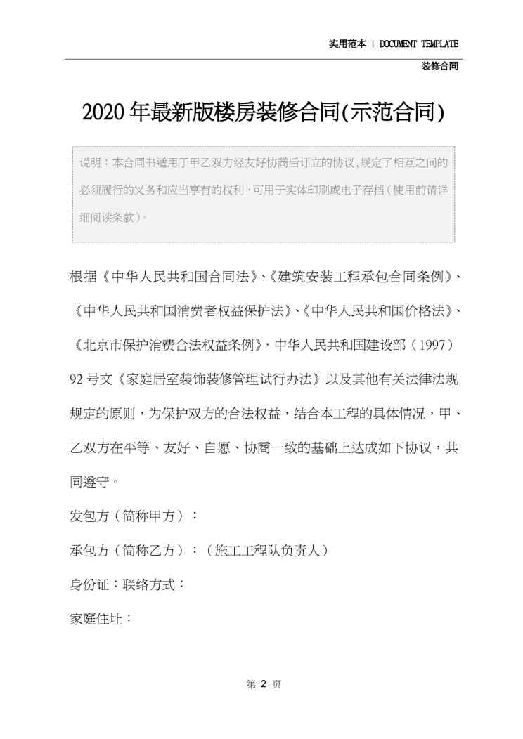 不久前,最新文档《2020年最新版楼房装修合同(示范合同)》全文正式在本站发布,感兴趣的用户可以下载阅读。 声明:本站所有文章,如无特殊说明或标注,均为本站原创发布。任何个人或组织,在未征得本站同意时,禁止复制、盗用、采集、发布本站内容到任何网站、书籍等各类媒体平台。如若本站内容侵犯了原著者的合法权益,可联系我们进行处理。