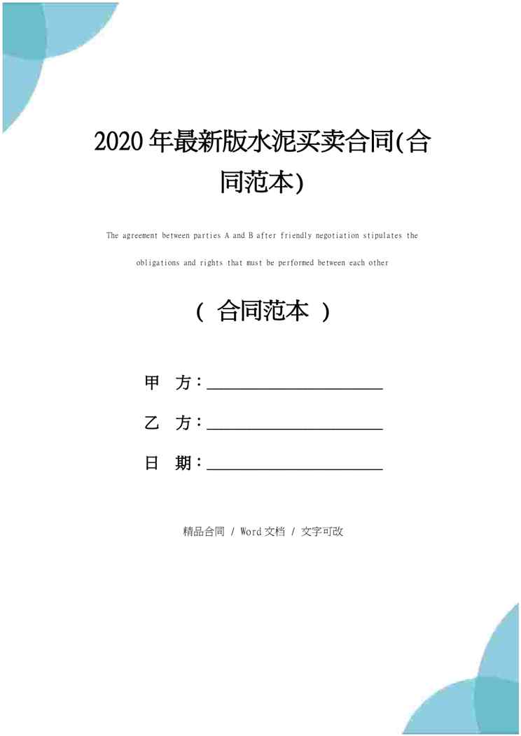 不久前,最新文档《2020年最新版水泥买卖合同(合同范本)》全文正式在本站发布,感兴趣的用户可以下载阅读。 声明:本站所有文章,如无特殊说明或标注,均为本站原创发布。任何个人或组织,在未征得本站同意时,禁止复制、盗用、采集、发布本站内容到任何网站、书籍等各类媒体平台。如若本站内容侵犯了原著者的合法权益,可联系我们进行处理。