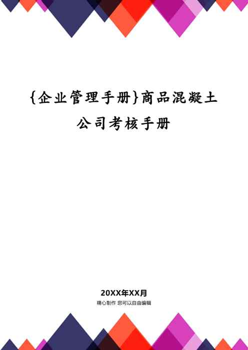 本站资深用户发布了最新的《{企业管理手册}商品混凝土公司考核手册》文档,以下内容为预览,详细内容可下载阅读。 声明:本站所有文章,如无特殊说明或标注,均为本站原创发布。任何个人或组织,在未征得本站同意时,禁止复制、盗用、采集、发布本站内容到任何网站、书籍等各类媒体平台。如若本站内容侵犯了原著者的合法权益,可联系我们进行处理。