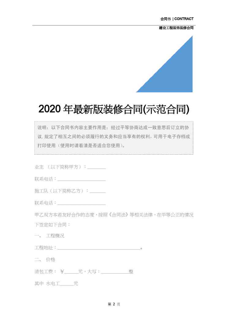 本站正式发布了《2020年最新版装修合同(示范合同)1609148784》文档,文档详细内容可下载阅读。 声明:本站所有文章,如无特殊说明或标注,均为本站原创发布。任何个人或组织,在未征得本站同意时,禁止复制、盗用、采集、发布本站内容到任何网站、书籍等各类媒体平台。如若本站内容侵犯了原著者的合法权益,可联系我们进行处理。
