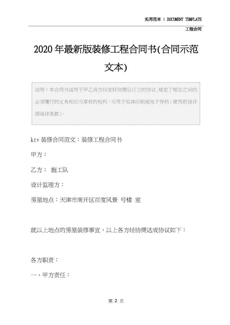 本站资深用户发布了最新的《2020年最新版装修工程合同书(合同示范文本)》文档,以下内容为预览,详细内容可下载阅读。 声明:本站所有文章,如无特殊说明或标注,均为本站原创发布。任何个人或组织,在未征得本站同意时,禁止复制、盗用、采集、发布本站内容到任何网站、书籍等各类媒体平台。如若本站内容侵犯了原著者的合法权益,可联系我们进行处理。