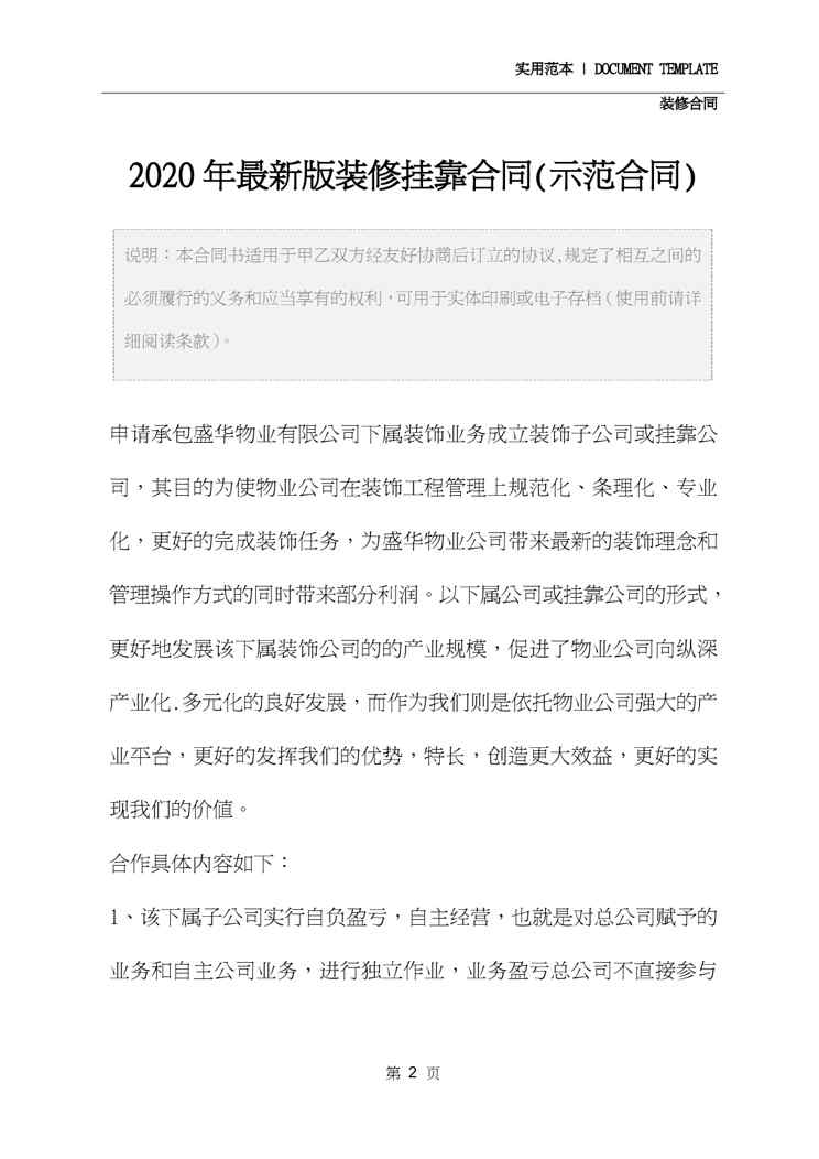 本站资深用户发布了最新的《2020年最新版装修挂靠合同(示范合同)》文档,以下内容为预览,详细内容可下载阅读。 声明:本站所有文章,如无特殊说明或标注,均为本站原创发布。任何个人或组织,在未征得本站同意时,禁止复制、盗用、采集、发布本站内容到任何网站、书籍等各类媒体平台。如若本站内容侵犯了原著者的合法权益,可联系我们进行处理。