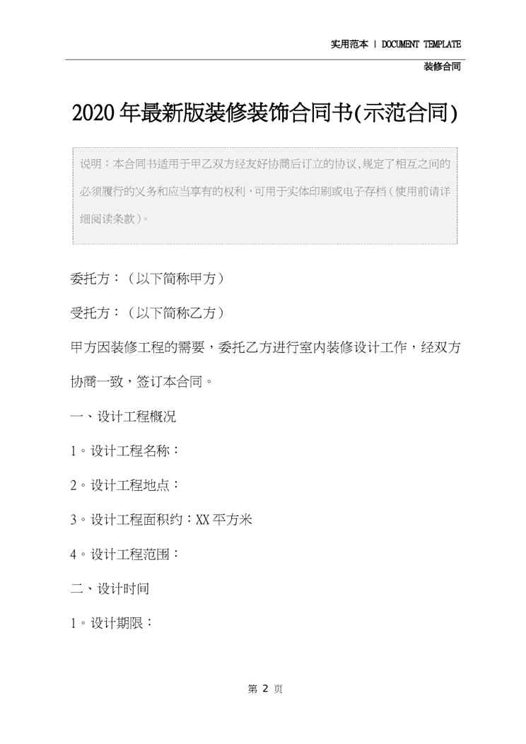 本站资深用户发布了最新的《2020年最新版装修装饰合同书(示范合同)》文档,以下内容为预览,详细内容可下载阅读。 声明:本站所有文章,如无特殊说明或标注,均为本站原创发布。任何个人或组织,在未征得本站同意时,禁止复制、盗用、采集、发布本站内容到任何网站、书籍等各类媒体平台。如若本站内容侵犯了原著者的合法权益,可联系我们进行处理。