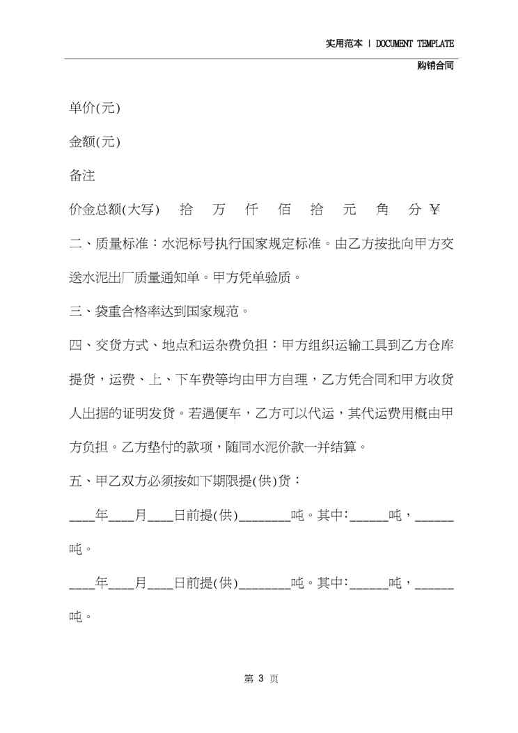 本站正式发布了《2020年水泥购销合同范本》文档,文档详细内容可下载阅读。 声明:本站所有文章,如无特殊说明或标注,均为本站原创发布。任何个人或组织,在未征得本站同意时,禁止复制、盗用、采集、发布本站内容到任何网站、书籍等各类媒体平台。如若本站内容侵犯了原著者的合法权益,可联系我们进行处理。