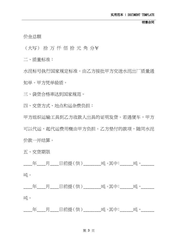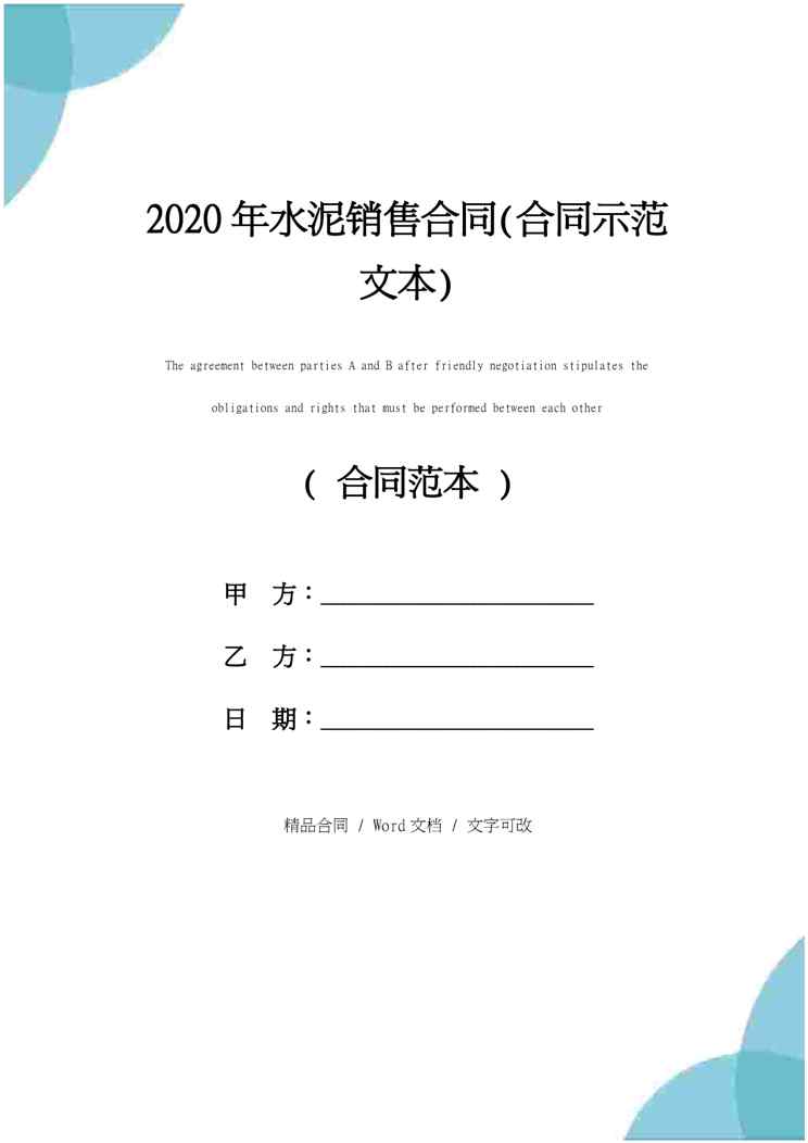 本站正式发布了《2020年水泥销售合同(合同示范文本)》文档,文档详细内容可下载阅读。 声明:本站所有文章,如无特殊说明或标注,均为本站原创发布。任何个人或组织,在未征得本站同意时,禁止复制、盗用、采集、发布本站内容到任何网站、书籍等各类媒体平台。如若本站内容侵犯了原著者的合法权益,可联系我们进行处理。