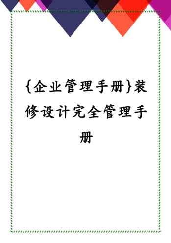 不久前,最新文档《{企业管理手册}装修设计完全管理手册》全文正式在本站发布,感兴趣的用户可以下载阅读。 声明:本站所有文章,如无特殊说明或标注,均为本站原创发布。任何个人或组织,在未征得本站同意时,禁止复制、盗用、采集、发布本站内容到任何网站、书籍等各类媒体平台。如若本站内容侵犯了原著者的合法权益,可联系我们进行处理。