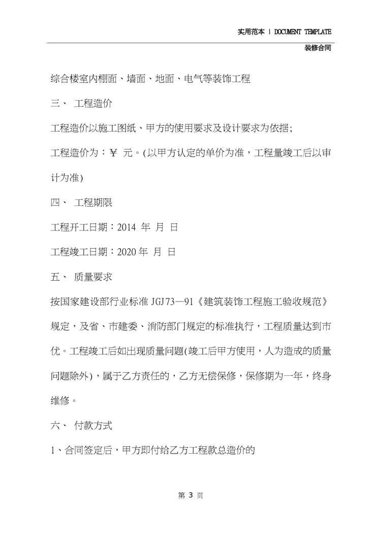 不久前,最新文档《2020年装修公司正规合同模板(合同示范文本)》全文正式在本站发布,感兴趣的用户可以下载阅读。 声明:本站所有文章,如无特殊说明或标注,均为本站原创发布。任何个人或组织,在未征得本站同意时,禁止复制、盗用、采集、发布本站内容到任何网站、书籍等各类媒体平台。如若本站内容侵犯了原著者的合法权益,可联系我们进行处理。