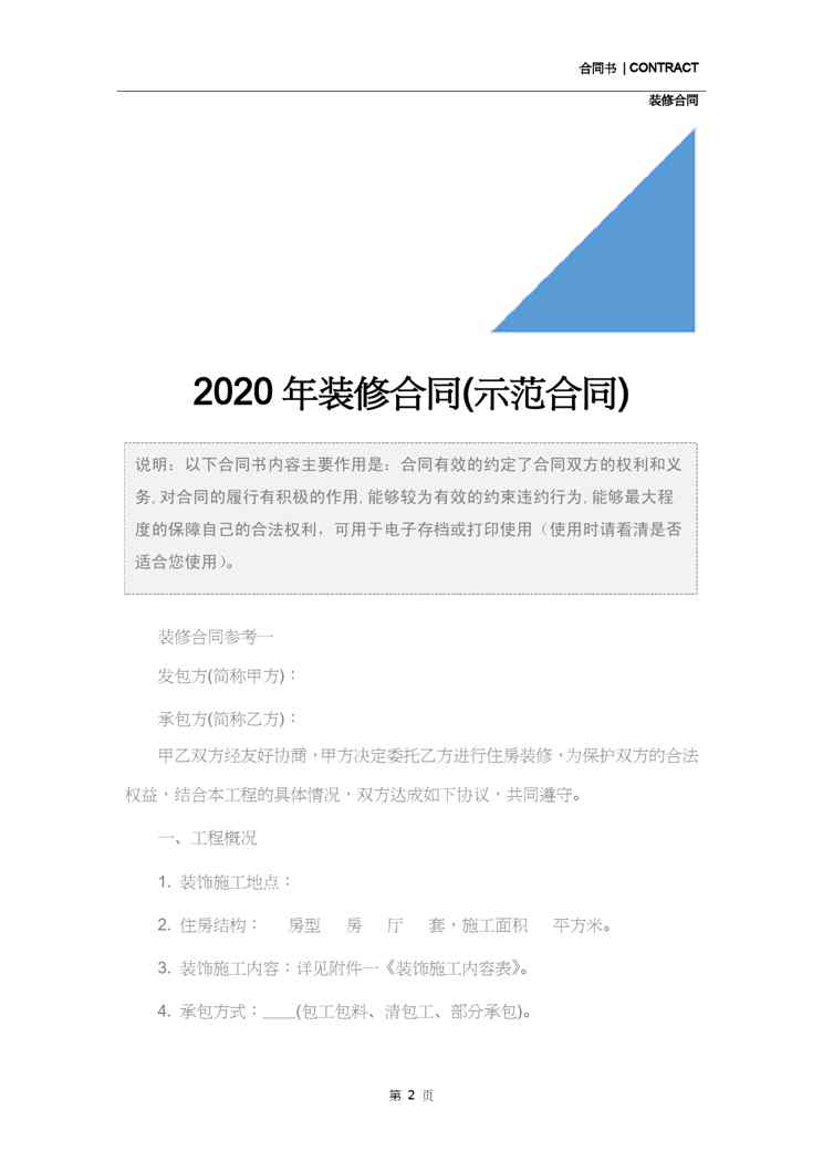 不久前,最新文档《2020年装修合同(示范合同)》全文正式在本站发布,感兴趣的用户可以下载阅读。 声明:本站所有文章,如无特殊说明或标注,均为本站原创发布。任何个人或组织,在未征得本站同意时,禁止复制、盗用、采集、发布本站内容到任何网站、书籍等各类媒体平台。如若本站内容侵犯了原著者的合法权益,可联系我们进行处理。
