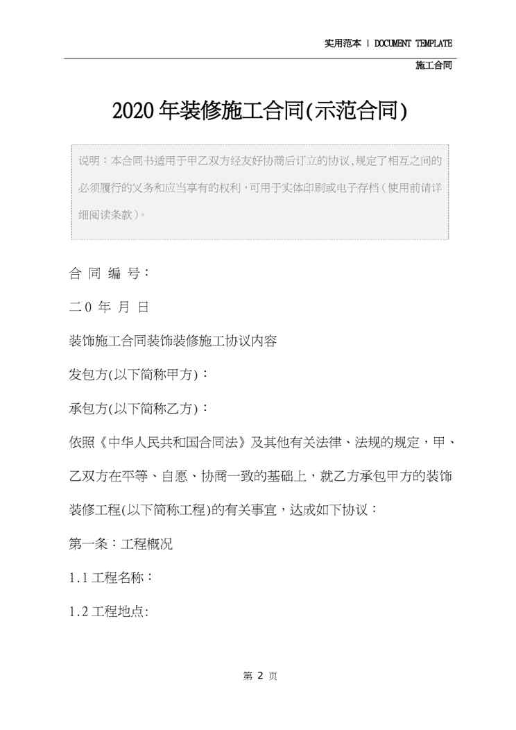 本站资深用户发布了最新的《2020年装修施工合同(示范合同)》文档,以下内容为预览,详细内容可下载阅读。 声明:本站所有文章,如无特殊说明或标注,均为本站原创发布。任何个人或组织,在未征得本站同意时,禁止复制、盗用、采集、发布本站内容到任何网站、书籍等各类媒体平台。如若本站内容侵犯了原著者的合法权益,可联系我们进行处理。