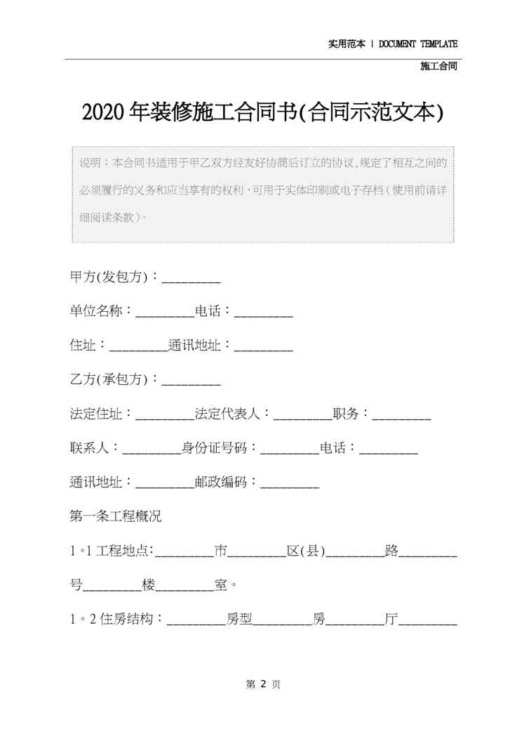 不久前,最新文档《2020年装修施工合同书(合同示范文本)》全文正式在本站发布,感兴趣的用户可以下载阅读。 声明:本站所有文章,如无特殊说明或标注,均为本站原创发布。任何个人或组织,在未征得本站同意时,禁止复制、盗用、采集、发布本站内容到任何网站、书籍等各类媒体平台。如若本站内容侵犯了原著者的合法权益,可联系我们进行处理。