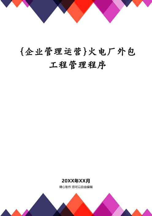 不久前,最新文档《{企业管理运营}火电厂外包工程管理程序》全文正式在本站发布,感兴趣的用户可以下载阅读。 声明:本站所有文章,如无特殊说明或标注,均为本站原创发布。任何个人或组织,在未征得本站同意时,禁止复制、盗用、采集、发布本站内容到任何网站、书籍等各类媒体平台。如若本站内容侵犯了原著者的合法权益,可联系我们进行处理。
