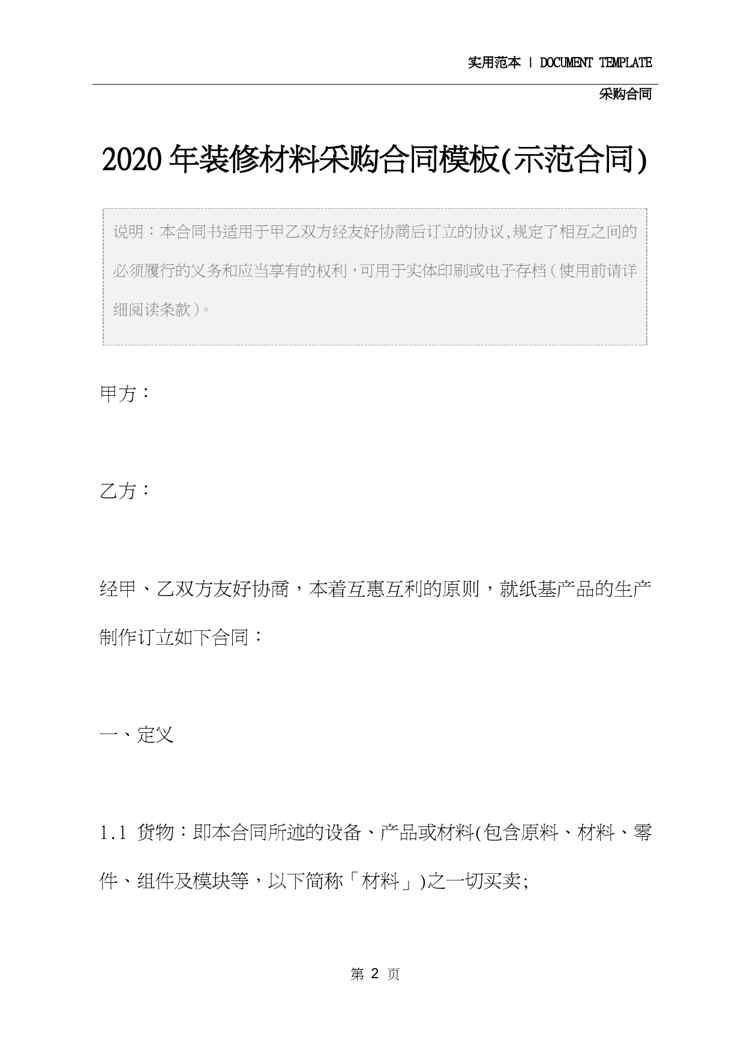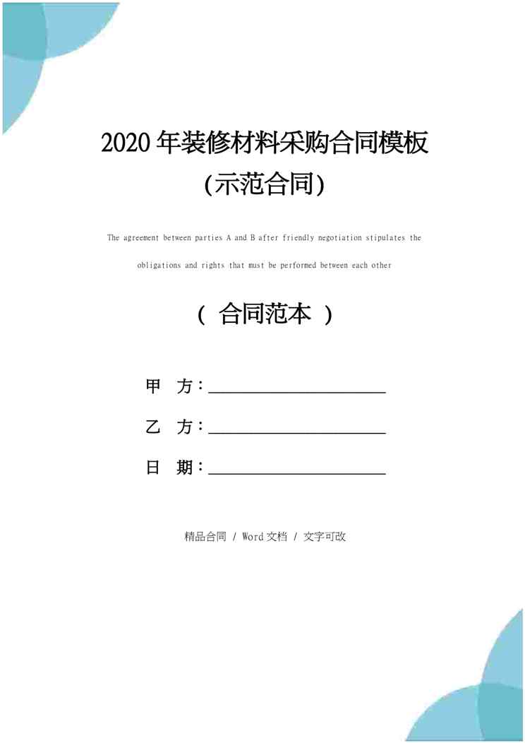 本站资深用户发布了最新的《2020年装修材料采购合同模板(示范合同)》文档,以下内容为预览,详细内容可下载阅读。 声明:本站所有文章,如无特殊说明或标注,均为本站原创发布。任何个人或组织,在未征得本站同意时,禁止复制、盗用、采集、发布本站内容到任何网站、书籍等各类媒体平台。如若本站内容侵犯了原著者的合法权益,可联系我们进行处理。