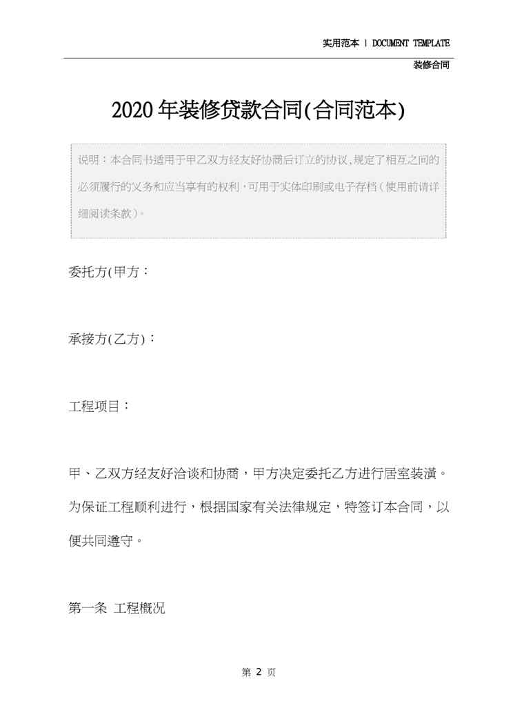 本站资深用户发布了最新的《2020年装修贷款合同(合同范本)》文档,以下内容为预览,详细内容可下载阅读。 声明:本站所有文章,如无特殊说明或标注,均为本站原创发布。任何个人或组织,在未征得本站同意时,禁止复制、盗用、采集、发布本站内容到任何网站、书籍等各类媒体平台。如若本站内容侵犯了原著者的合法权益,可联系我们进行处理。