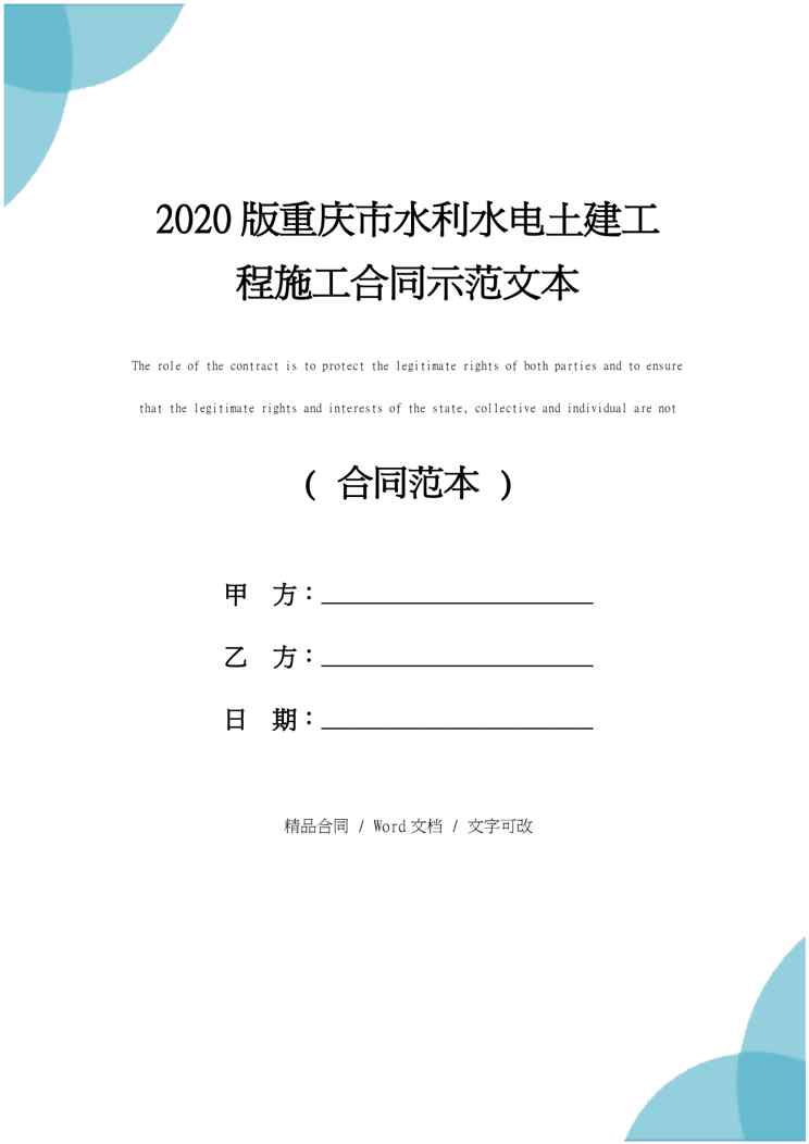 2020年重庆市水利水电土建工程施工合同示范文本2020年重庆市水利水电土建工程施工合同示范文本2020年重庆市水利水电土建工程施工合同示范文本2020年重庆市水利水电土建工程施工合同示范文本2020年重庆市水利水电土建工程施工合同示范文本