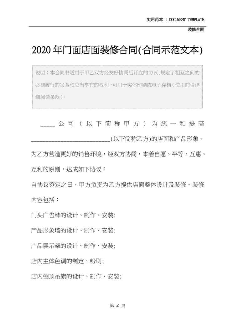 本站正式发布了《2020年门面店面装修合同(合同示范文本)》文档,文档详细内容可下载阅读。 声明:本站所有文章,如无特殊说明或标注,均为本站原创发布。任何个人或组织,在未征得本站同意时,禁止复制、盗用、采集、发布本站内容到任何网站、书籍等各类媒体平台。如若本站内容侵犯了原著者的合法权益,可联系我们进行处理。