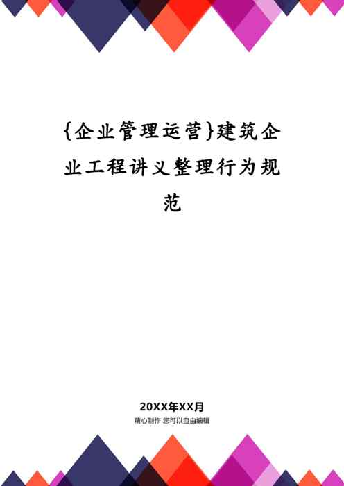 本站资深用户发布了最新的《{企业管理运营}建筑企业工程讲义整理行为规范》文档,以下内容为预览,详细内容可下载阅读。 声明:本站所有文章,如无特殊说明或标注,均为本站原创发布。任何个人或组织,在未征得本站同意时,禁止复制、盗用、采集、发布本站内容到任何网站、书籍等各类媒体平台。如若本站内容侵犯了原著者的合法权益,可联系我们进行处理。