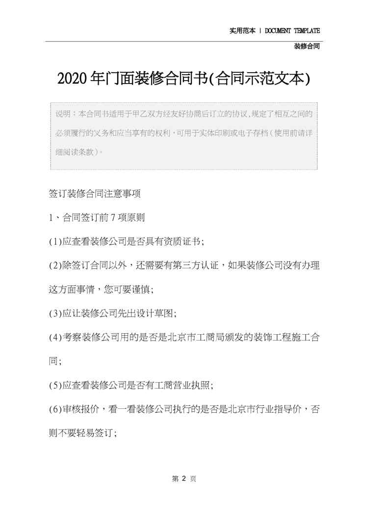 本站资深用户发布了最新的《2020年门面装修合同书(合同示范文本)》文档,以下内容为预览,详细内容可下载阅读。 声明:本站所有文章,如无特殊说明或标注,均为本站原创发布。任何个人或组织,在未征得本站同意时,禁止复制、盗用、采集、发布本站内容到任何网站、书籍等各类媒体平台。如若本站内容侵犯了原著者的合法权益,可联系我们进行处理。