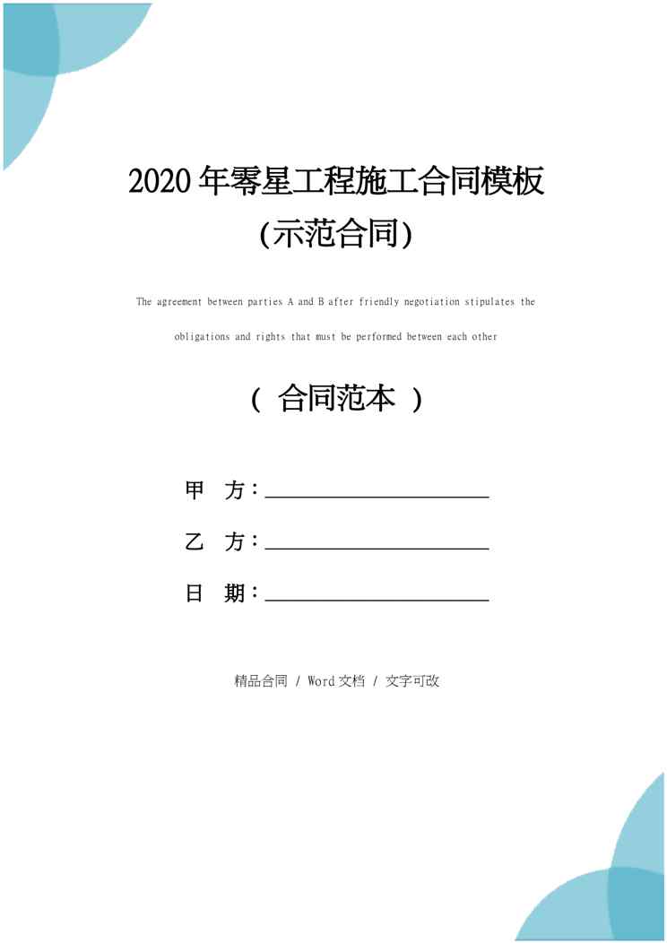 本站正式发布了《2020年零星工程施工合同模板(示范合同)》文档,文档详细内容可下载阅读。 声明:本站所有文章,如无特殊说明或标注,均为本站原创发布。任何个人或组织,在未征得本站同意时,禁止复制、盗用、采集、发布本站内容到任何网站、书籍等各类媒体平台。如若本站内容侵犯了原著者的合法权益,可联系我们进行处理。