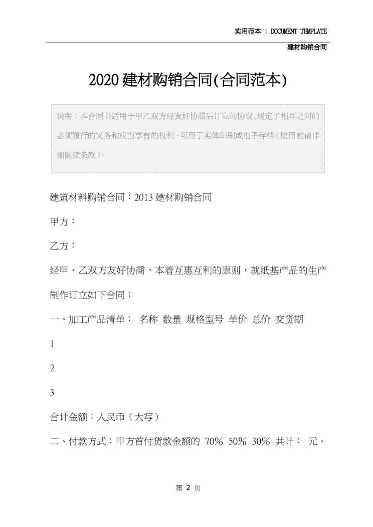本站正式发布了《2020建材购销合同(合同范本)》文档,文档详细内容可下载阅读。 声明:本站所有文章,如无特殊说明或标注,均为本站原创发布。任何个人或组织,在未征得本站同意时,禁止复制、盗用、采集、发布本站内容到任何网站、书籍等各类媒体平台。如若本站内容侵犯了原著者的合法权益,可联系我们进行处理。