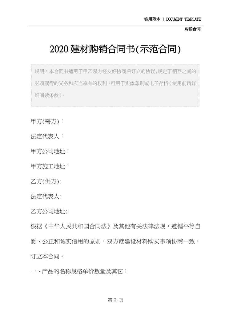 不久前,最新文档《2020建材购销合同书(示范合同)》全文正式在本站发布,感兴趣的用户可以下载阅读。 声明:本站所有文章,如无特殊说明或标注,均为本站原创发布。任何个人或组织,在未征得本站同意时,禁止复制、盗用、采集、发布本站内容到任何网站、书籍等各类媒体平台。如若本站内容侵犯了原著者的合法权益,可联系我们进行处理。