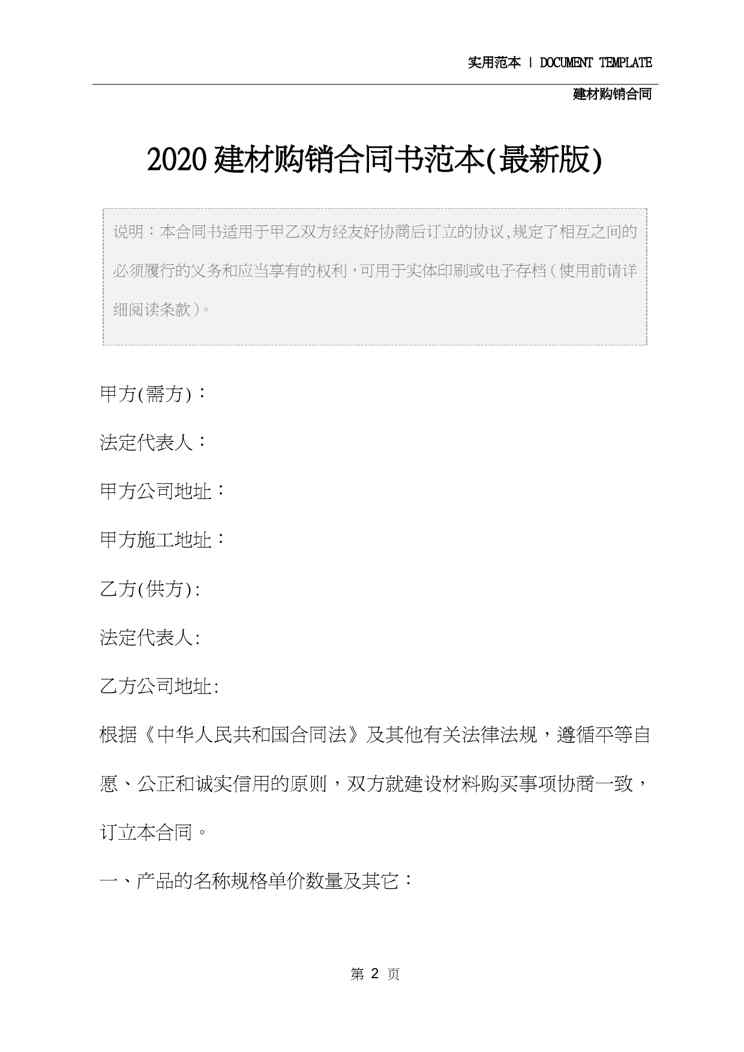 不久前,最新文档《2020建材购销合同书范本(最新版)》全文正式在本站发布,感兴趣的用户可以下载阅读。 声明:本站所有文章,如无特殊说明或标注,均为本站原创发布。任何个人或组织,在未征得本站同意时,禁止复制、盗用、采集、发布本站内容到任何网站、书籍等各类媒体平台。如若本站内容侵犯了原著者的合法权益,可联系我们进行处理。