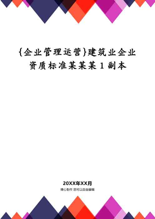 本站正式发布了《{企业管理运营}建筑业企业资质标准某某某1副本》文档,文档详细内容可下载阅读。 声明:本站所有文章,如无特殊说明或标注,均为本站原创发布。任何个人或组织,在未征得本站同意时,禁止复制、盗用、采集、发布本站内容到任何网站、书籍等各类媒体平台。如若本站内容侵犯了原著者的合法权益,可联系我们进行处理。