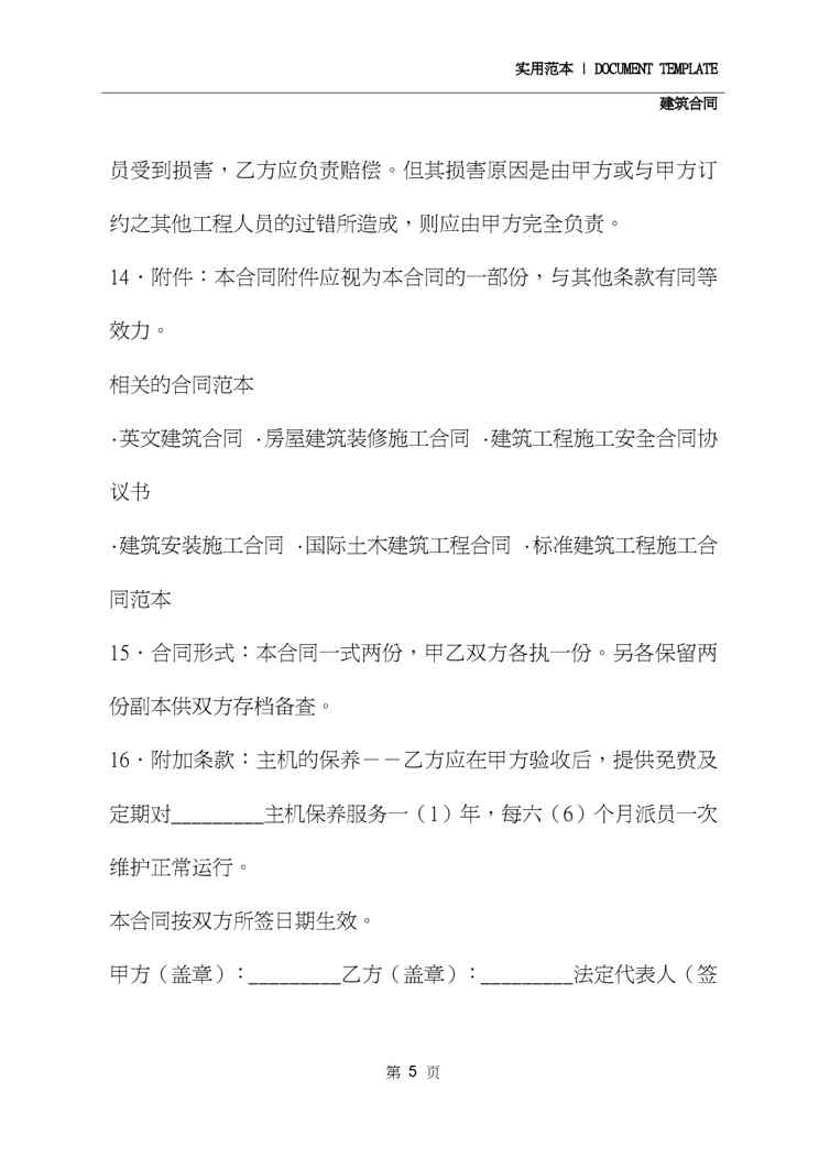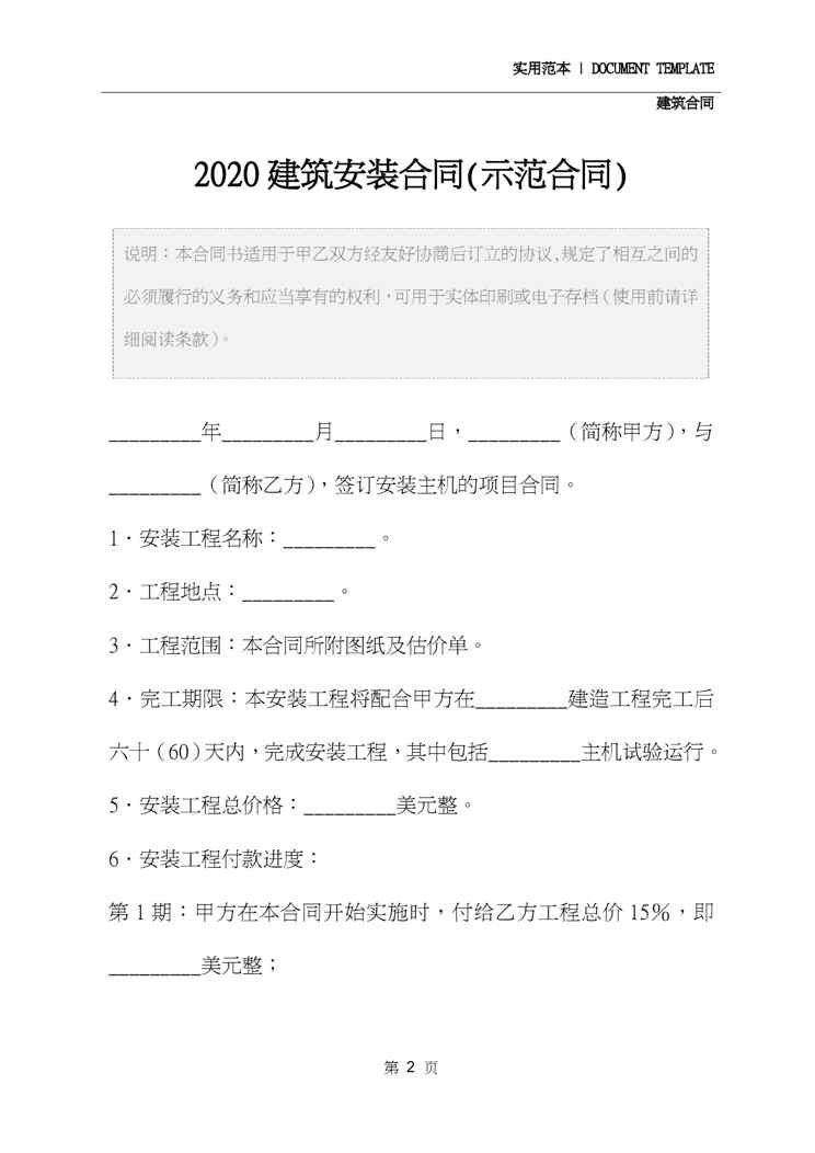 本站资深用户发布了最新的《2020建筑安装合同(示范合同)》文档,以下内容为预览,详细内容可下载阅读。 声明:本站所有文章,如无特殊说明或标注,均为本站原创发布。任何个人或组织,在未征得本站同意时,禁止复制、盗用、采集、发布本站内容到任何网站、书籍等各类媒体平台。如若本站内容侵犯了原著者的合法权益,可联系我们进行处理。
