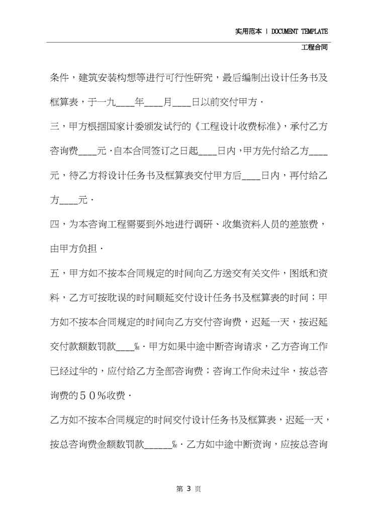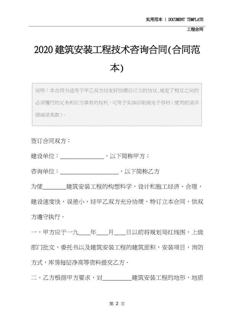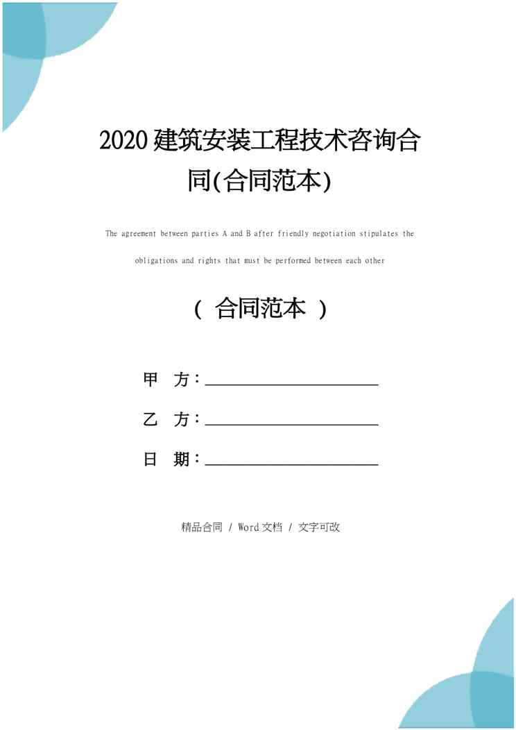 不久前,最新文档《2020建筑安装工程技术咨询合同(合同范本)》全文正式在本站发布,感兴趣的用户可以下载阅读。 声明:本站所有文章,如无特殊说明或标注,均为本站原创发布。任何个人或组织,在未征得本站同意时,禁止复制、盗用、采集、发布本站内容到任何网站、书籍等各类媒体平台。如若本站内容侵犯了原著者的合法权益,可联系我们进行处理。