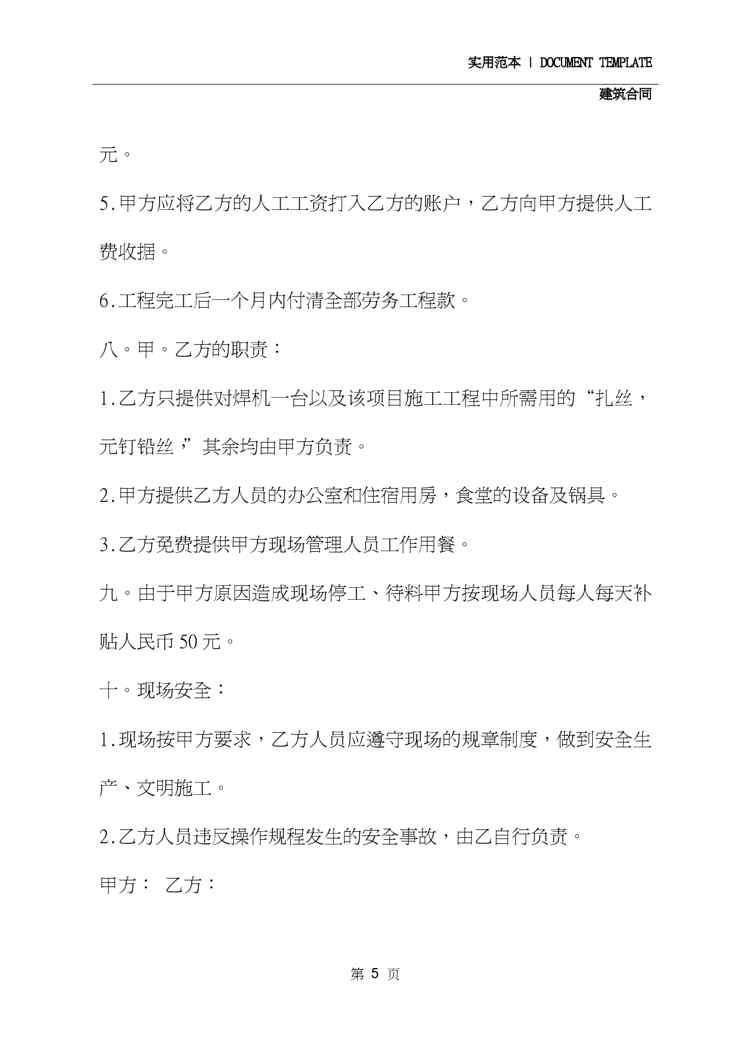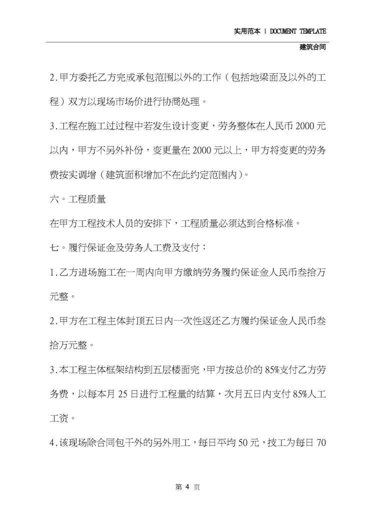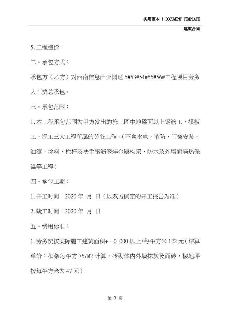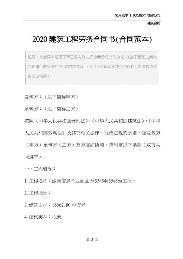 本站资深用户发布了最新的《2020建筑工程劳务合同书(合同范本)》文档,以下内容为预览,详细内容可下载阅读。 声明:本站所有文章,如无特殊说明或标注,均为本站原创发布。任何个人或组织,在未征得本站同意时,禁止复制、盗用、采集、发布本站内容到任何网站、书籍等各类媒体平台。如若本站内容侵犯了原著者的合法权益,可联系我们进行处理。