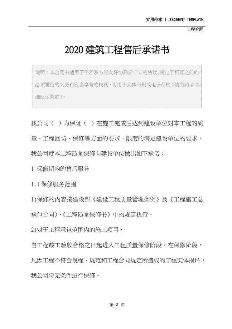 本站资深用户发布了最新的《2020建筑工程售后承诺书》文档,以下内容为预览,详细内容可下载阅读。 声明:本站所有文章,如无特殊说明或标注,均为本站原创发布。任何个人或组织,在未征得本站同意时,禁止复制、盗用、采集、发布本站内容到任何网站、书籍等各类媒体平台。如若本站内容侵犯了原著者的合法权益,可联系我们进行处理。