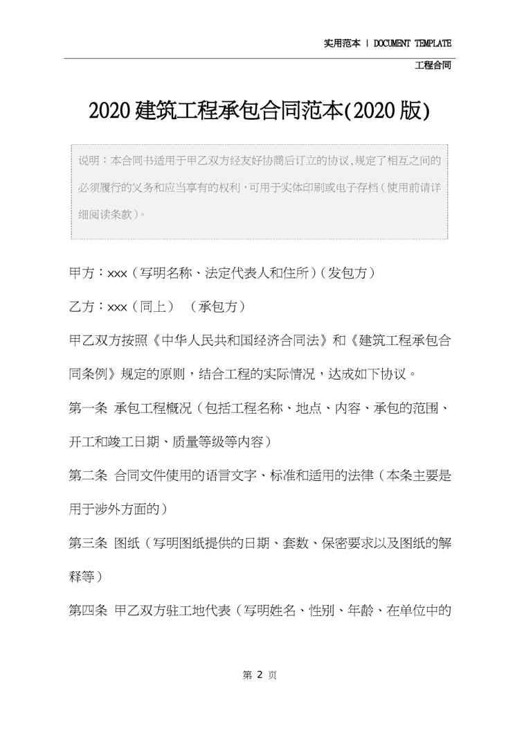 不久前,最新文档《2020建筑工程承包合同范本(2020版)》全文正式在本站发布,感兴趣的用户可以下载阅读。 声明:本站所有文章,如无特殊说明或标注,均为本站原创发布。任何个人或组织,在未征得本站同意时,禁止复制、盗用、采集、发布本站内容到任何网站、书籍等各类媒体平台。如若本站内容侵犯了原著者的合法权益,可联系我们进行处理。