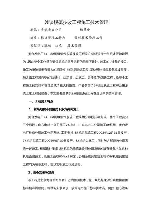 本站正式发布了《{企业管理运营}浅谈脱硫技改工程施工技术管理》文档,文档详细内容可下载阅读。 声明:本站所有文章,如无特殊说明或标注,均为本站原创发布。任何个人或组织,在未征得本站同意时,禁止复制、盗用、采集、发布本站内容到任何网站、书籍等各类媒体平台。如若本站内容侵犯了原著者的合法权益,可联系我们进行处理。