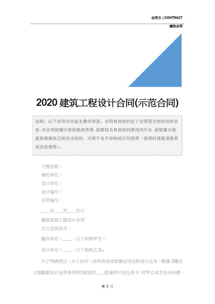 本站正式发布了《2020建筑工程设计合同(示范合同)1609148802》文档,文档详细内容可下载阅读。 声明:本站所有文章,如无特殊说明或标注,均为本站原创发布。任何个人或组织,在未征得本站同意时,禁止复制、盗用、采集、发布本站内容到任何网站、书籍等各类媒体平台。如若本站内容侵犯了原著者的合法权益,可联系我们进行处理。