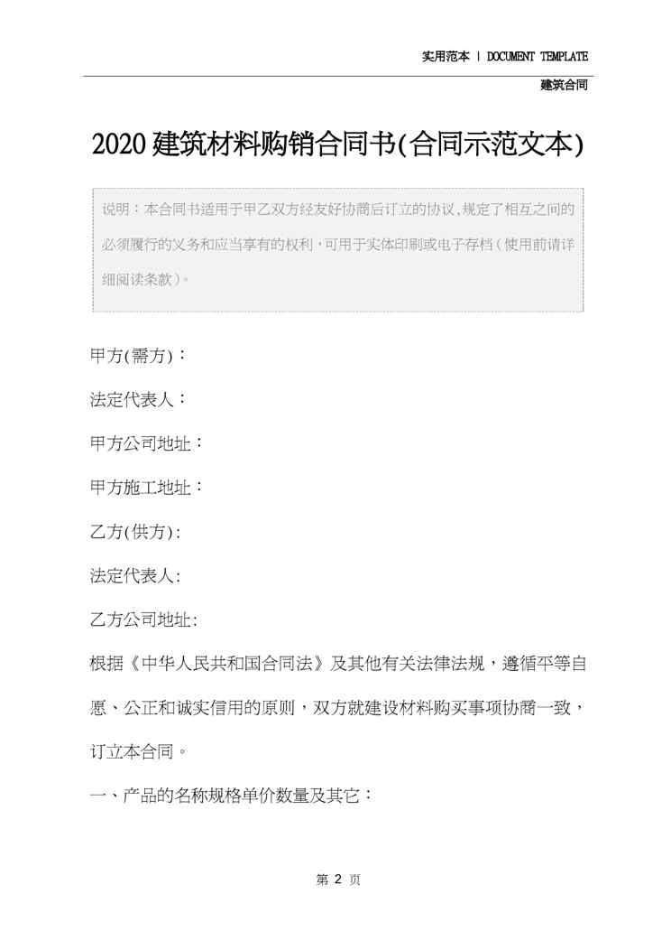 不久前,最新文档《2020建筑材料购销合同书(合同示范文本)》全文正式在本站发布,感兴趣的用户可以下载阅读。 声明:本站所有文章,如无特殊说明或标注,均为本站原创发布。任何个人或组织,在未征得本站同意时,禁止复制、盗用、采集、发布本站内容到任何网站、书籍等各类媒体平台。如若本站内容侵犯了原著者的合法权益,可联系我们进行处理。