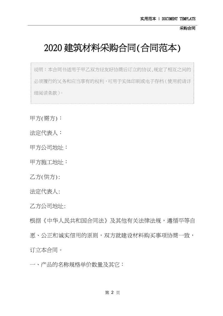 本站资深用户发布了最新的《2020建筑材料采购合同(合同范本)》文档,以下内容为预览,详细内容可下载阅读。
