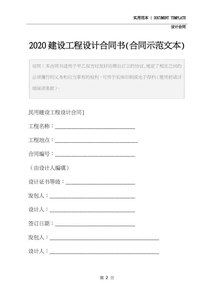 本站正式发布了《2020建设工程设计合同书(合同示范文本)》文档,文档详细内容可下载阅读。