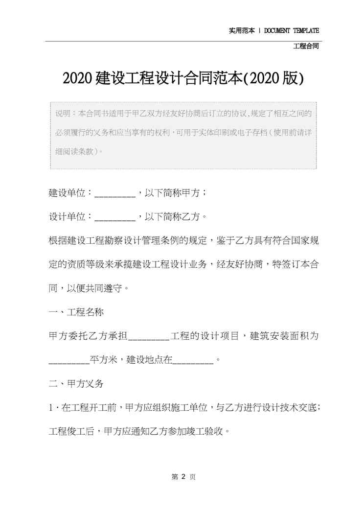 不久前,最新文档《2020建设工程设计合同范本(2020版)》全文正式在本站发布,感兴趣的用户可以下载阅读。 声明:本站所有文章,如无特殊说明或标注,均为本站原创发布。任何个人或组织,在未征得本站同意时,禁止复制、盗用、采集、发布本站内容到任何网站、书籍等各类媒体平台。如若本站内容侵犯了原著者的合法权益,可联系我们进行处理。