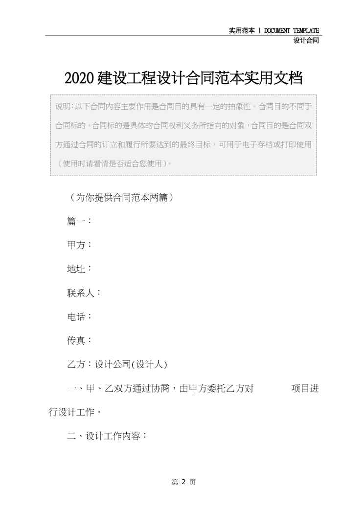 本站正式发布了《2020建设工程设计合同范本实用》文档,文档详细内容可下载阅读。 声明:本站所有文章,如无特殊说明或标注,均为本站原创发布。任何个人或组织,在未征得本站同意时,禁止复制、盗用、采集、发布本站内容到任何网站、书籍等各类媒体平台。如若本站内容侵犯了原著者的合法权益,可联系我们进行处理。