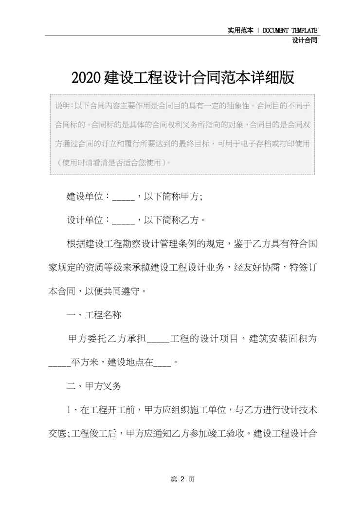 本站正式发布了《2020建设工程设计合同范本详细版》文档,文档详细内容可下载阅读。 声明:本站所有文章,如无特殊说明或标注,均为本站原创发布。任何个人或组织,在未征得本站同意时,禁止复制、盗用、采集、发布本站内容到任何网站、书籍等各类媒体平台。如若本站内容侵犯了原著者的合法权益,可联系我们进行处理。