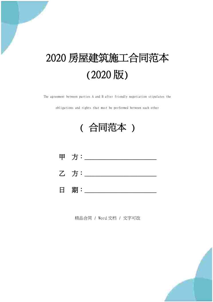 2020房屋建筑施工合同范本(2020版)2020房屋建筑施工合同范本(2020版)2020房屋建筑施工合同范本(2020版)2020房屋建筑施工合同范本(2020版)2020房屋建筑施工合同范本(2020版)