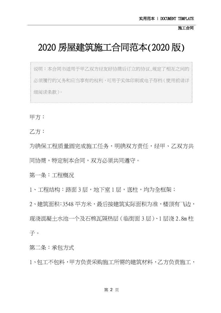 本站资深用户发布了最新的《2020房屋建筑施工合同范本(2020版)》文档,以下内容为预览,详细内容可下载阅读。