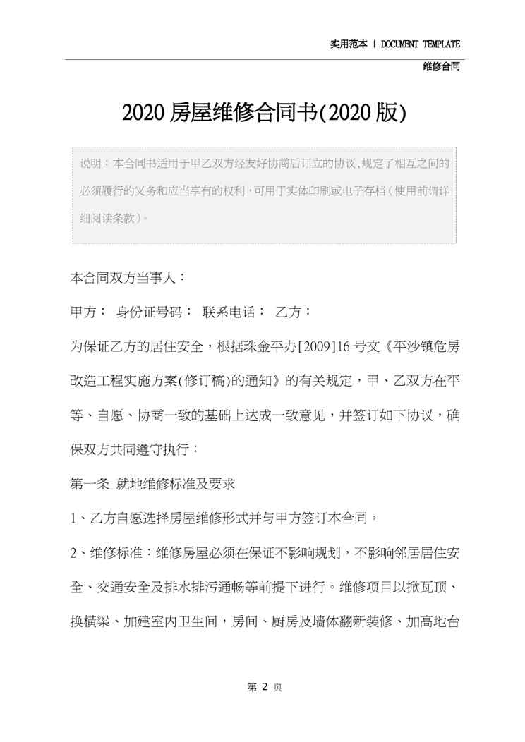 2020房屋维修合同书(2020版)2020房屋维修合同书(2020版)2020房屋维修合同书(2020版)2020房屋维修合同书(2020版)2020房屋维修合同书(2020版)