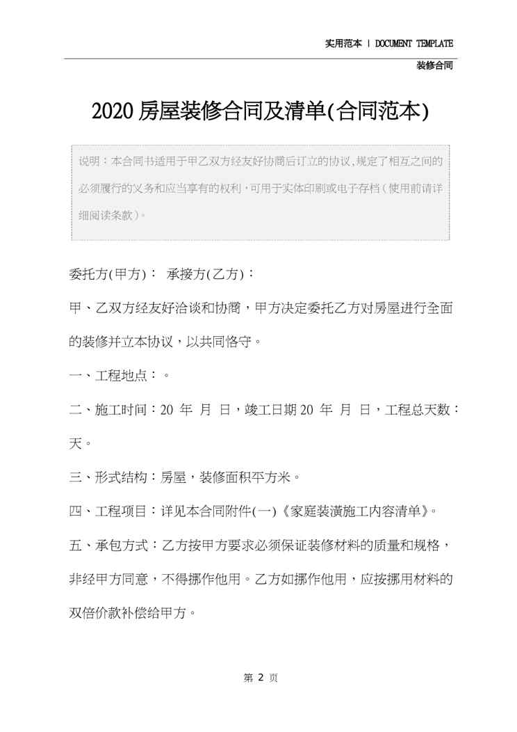 2020房屋装修合同及清单(合同范本)2020房屋装修合同及清单(合同范本)2020房屋装修合同及清单(合同范本)2020房屋装修合同及清单(合同范本)