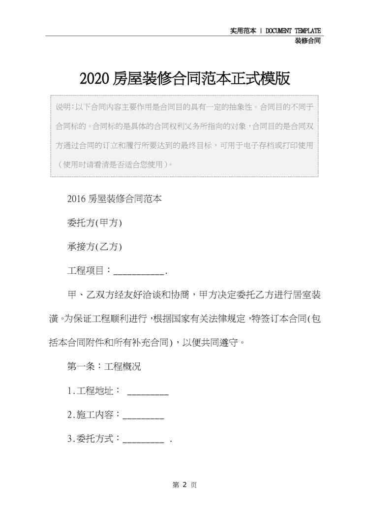 不久前,最新文档《2020房屋装修合同范本正式模版》全文正式在本站发布,感兴趣的用户可以下载阅读。 声明:本站所有文章,如无特殊说明或标注,均为本站原创发布。任何个人或组织,在未征得本站同意时,禁止复制、盗用、采集、发布本站内容到任何网站、书籍等各类媒体平台。如若本站内容侵犯了原著者的合法权益,可联系我们进行处理。